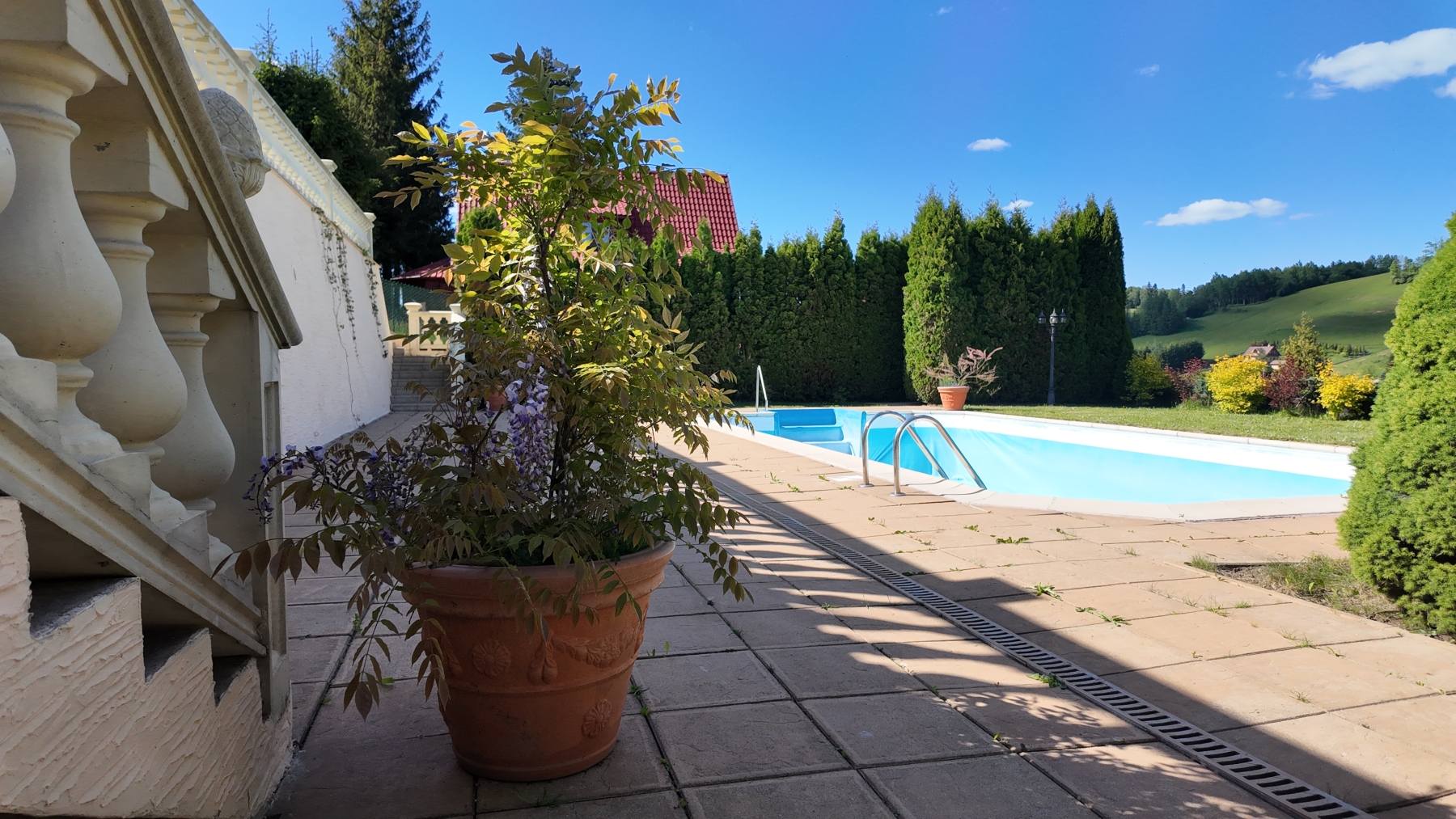 Do Twojej dyspozycji jest basen – jeden z niewielu w okolicy, ma 50 m² i jest podgrzewany. Mamy również dmuchane materace. Dookoła znajdziesz też leżaki i hamak, z których korzystaj do woli. Na Twoje życzenie przygotujemy dla Ciebie rzutnik — gdzie możesz wyświetlać co tylko chcesz — mecze, filmy, czy też prywatne prezentacje.