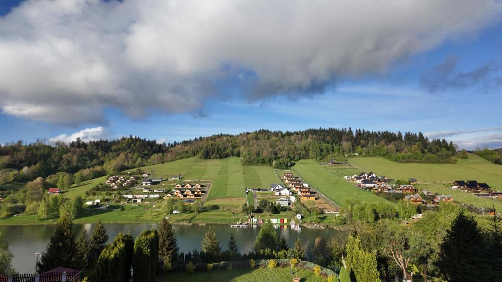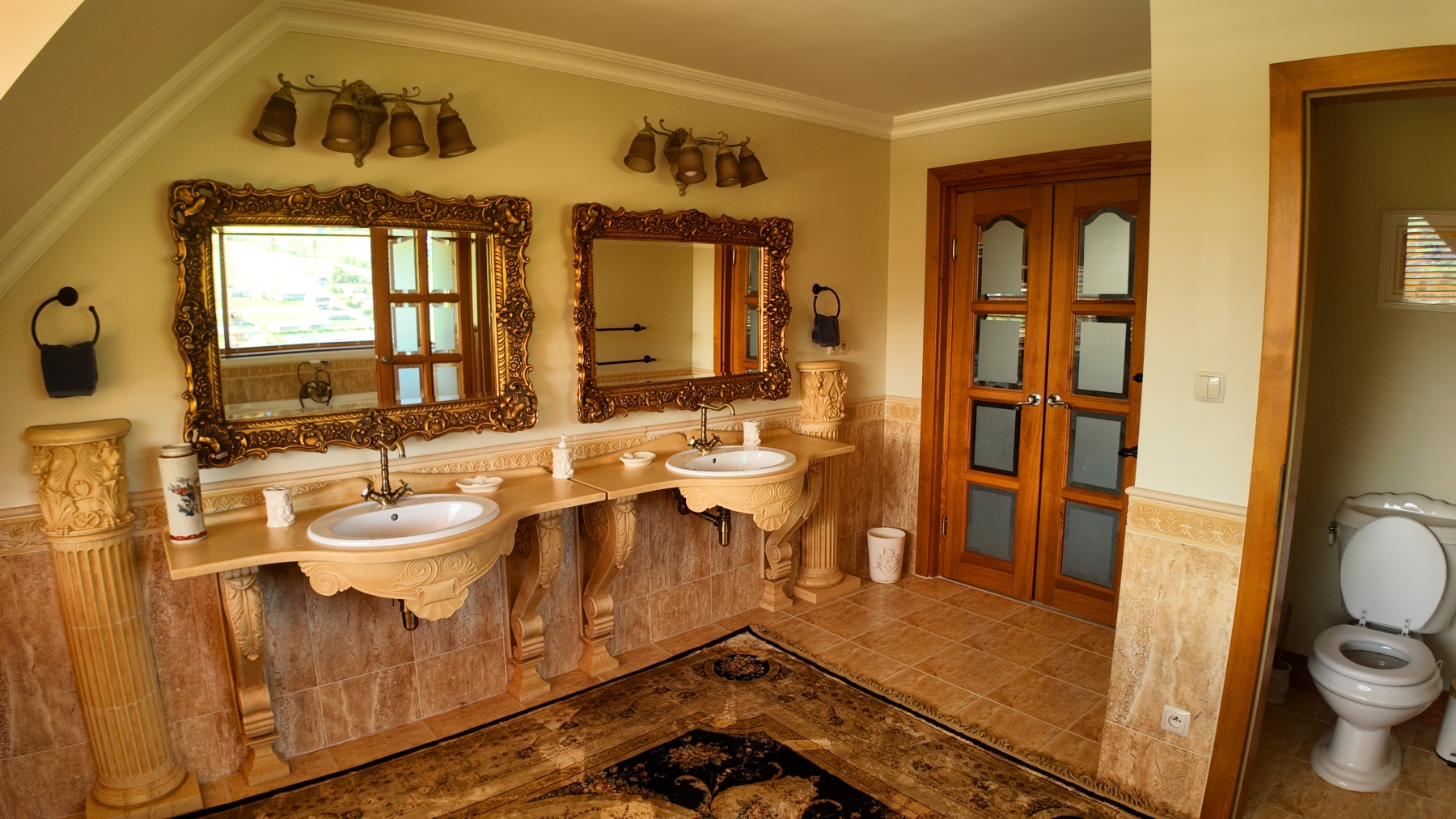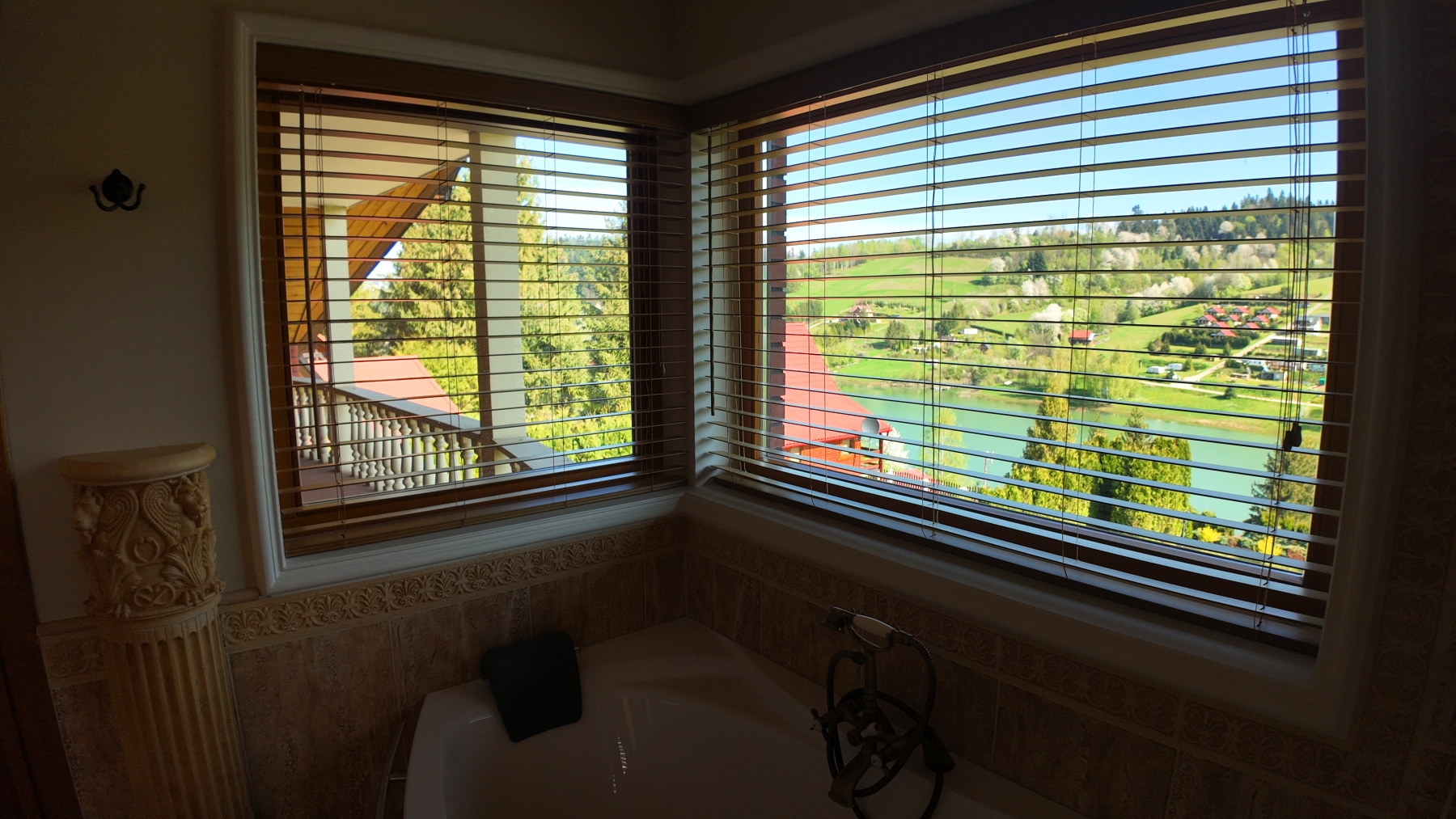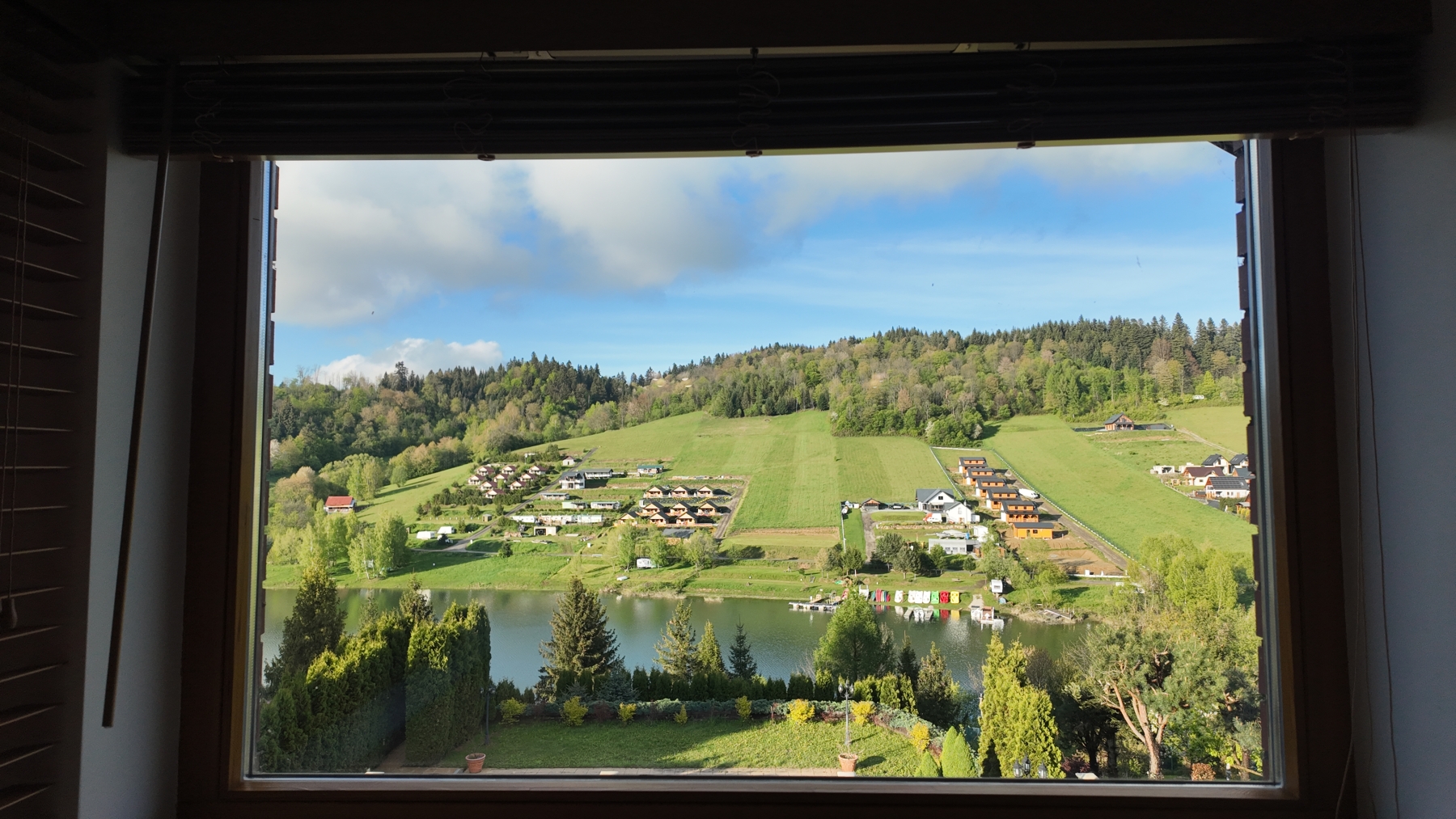 Apartament z widokiem na zielone wzgórza Bieszczad jest idealną opcją dla osób ceniących sobie przestrzeń. Zamiast zwyczajnej łazienki czeka na Ciebie pokój kąpielowy, w którym znajdziesz zarówno prysznic, jak i wannę. Do apartamentu należy również bardzo duża garderoba, w której bez problemu zmieścisz wszystkie swoje ubrania. Bezpośrednio z pokoju możesz wyjść na prywatny balkon, gdzie możesz rozsiąść się w drewnianych fotelach z poduchami i patrzeć na lasy i łąki porastające dookoła Jezioro Solińskie. Na dole zobaczysz też basen należący do obiektu. Apartament mieści się na pierwszym piętrze. Całkowita powierzchnia to 55,5 m².