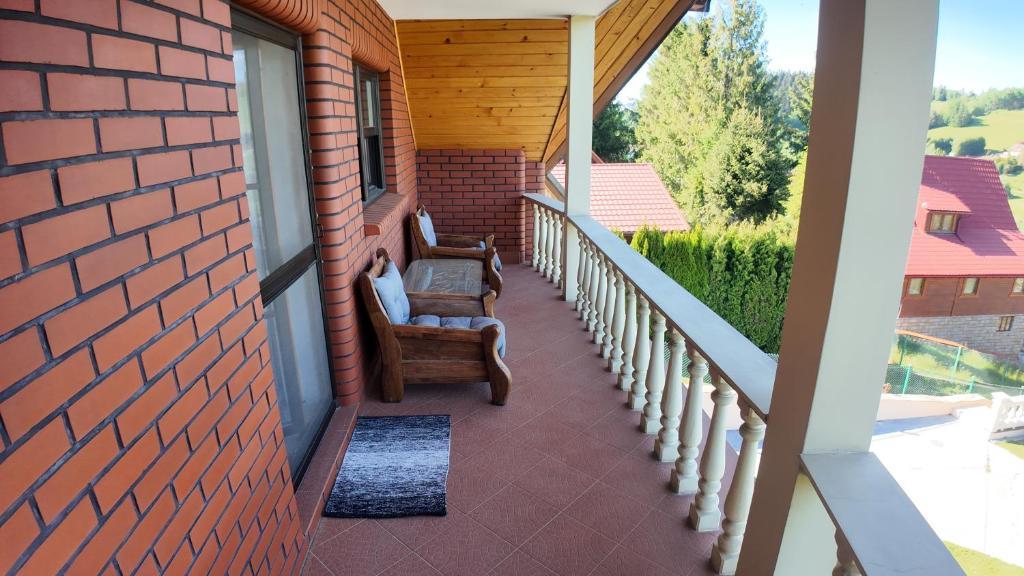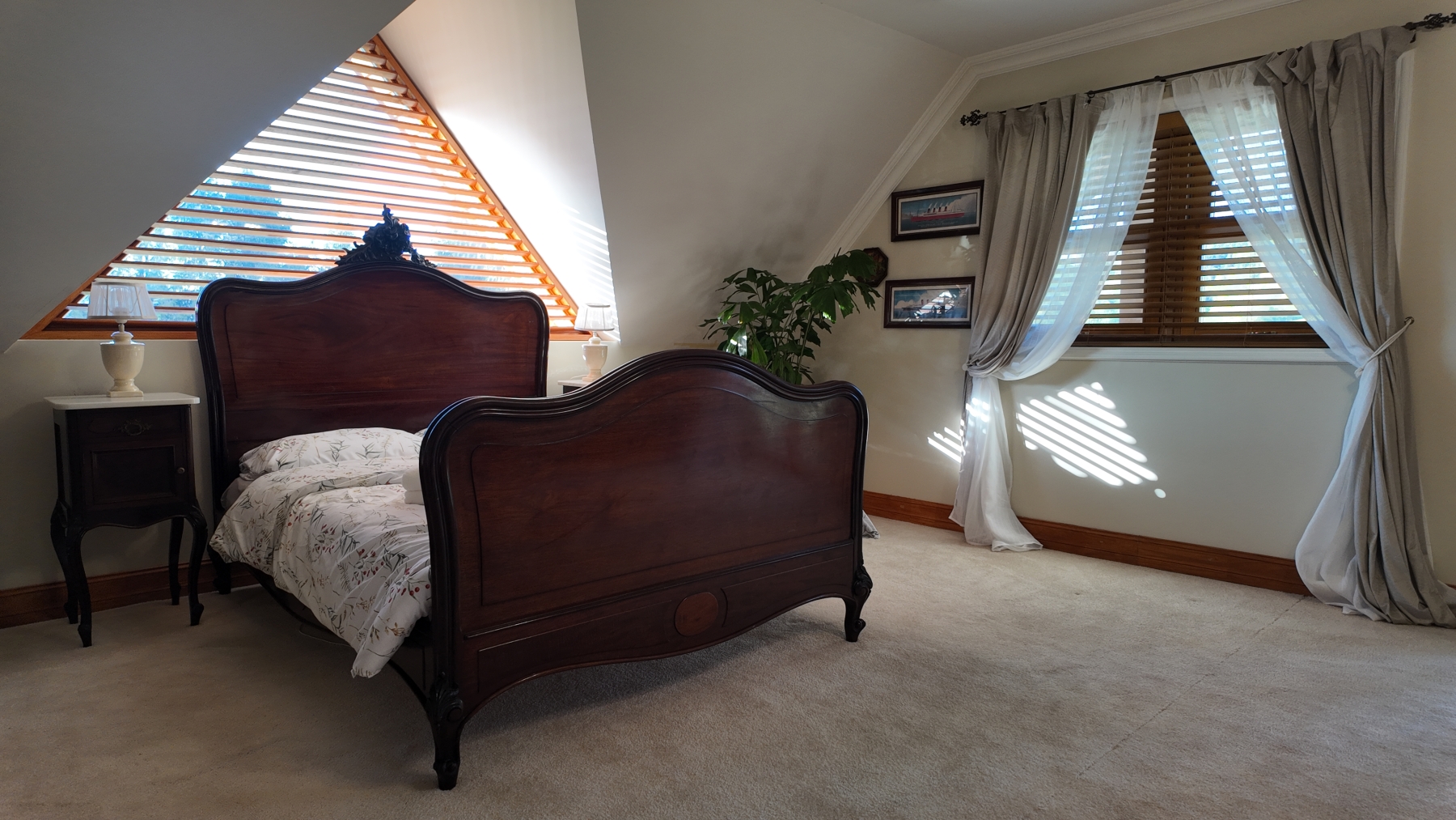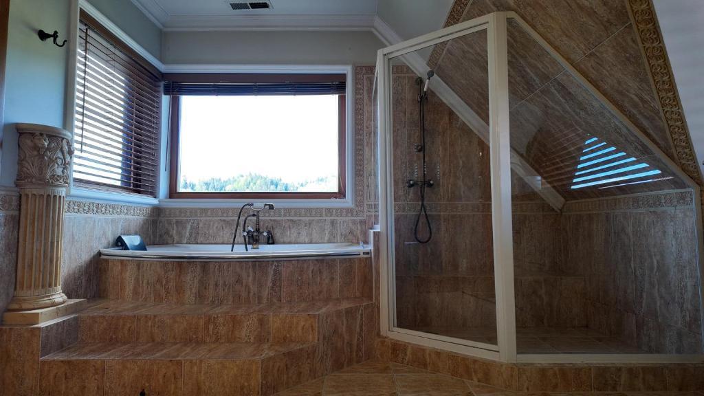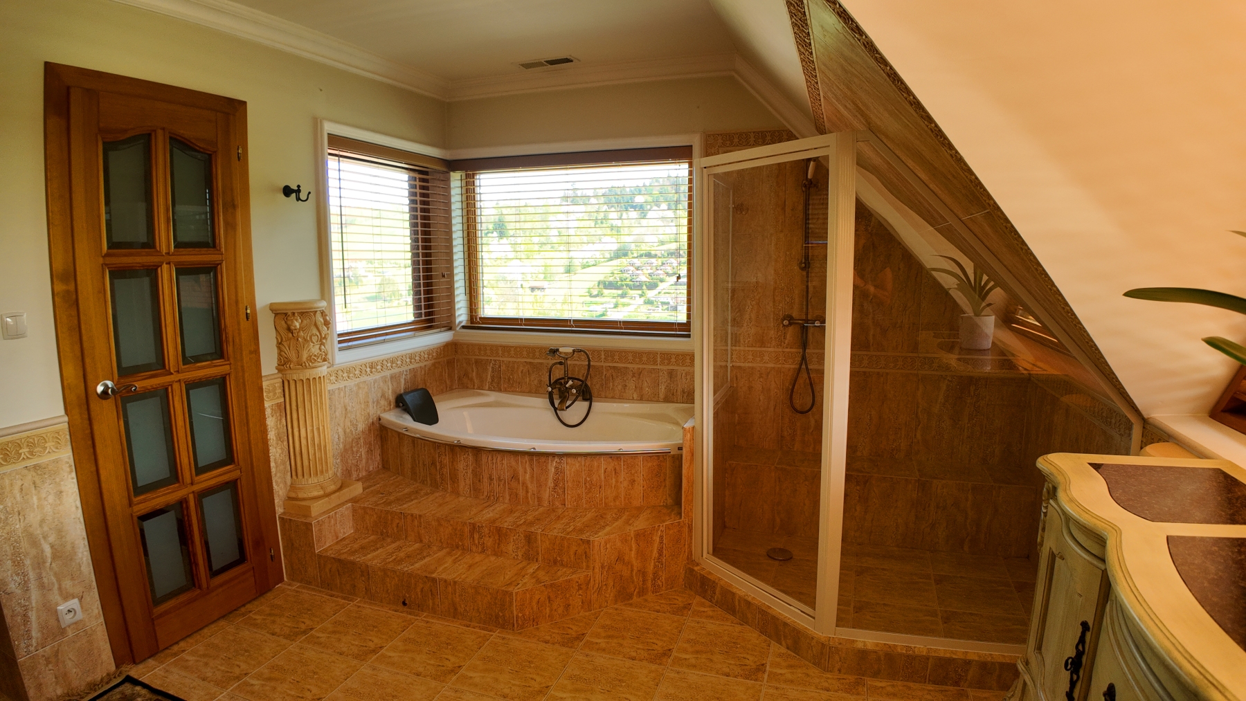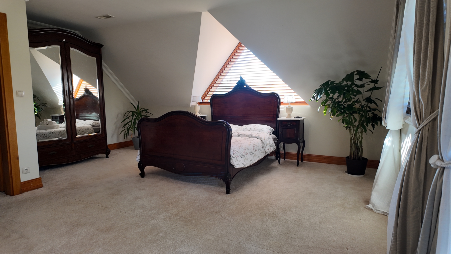 Apartament z widokiem na zielone wzgórza Bieszczad jest idealną opcją dla osób ceniących sobie przestrzeń. Zamiast zwyczajnej łazienki czeka na Ciebie pokój kąpielowy, w którym znajdziesz zarówno prysznic, jak i wannę. Do apartamentu należy również bardzo duża garderoba, w której bez problemu zmieścisz wszystkie swoje ubrania. Bezpośrednio z pokoju możesz wyjść na prywatny balkon, gdzie możesz rozsiąść się w drewnianych fotelach z poduchami i patrzeć na lasy i łąki porastające dookoła Jezioro Solińskie. Na dole zobaczysz też basen należący do obiektu. Apartament mieści się na pierwszym piętrze. Całkowita powierzchnia to 55,5 m².